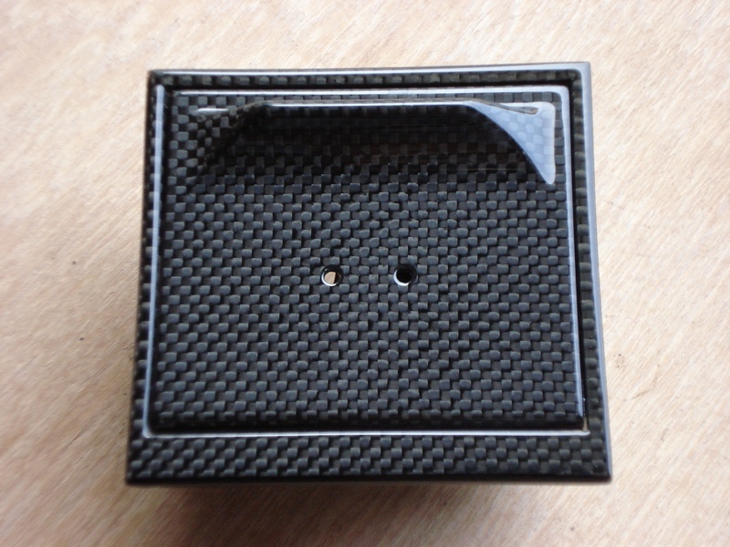 This center console ashtray unit is a direct replacement for the stock metal unit, which looks out of place in a carbon interior. This beautiful, handcrafted component is not simply a layer of carbon fiber fabric laminated on top of a stock metal piece, but rather a fully engineered composite solution. It will fit on 360 Modena and Spider models with stock hardware; no modifications to the original part or the vehicle are necessary. Thick urethane clear coat provides incredibly smooth, deep gloss and excellent durability. Holes for the crossed flags emblem can be pre-drilled on the ashtray lid, upon request. The lid is included with the unit, or is available individually for $275.