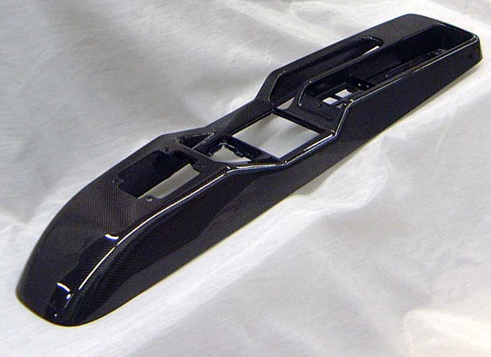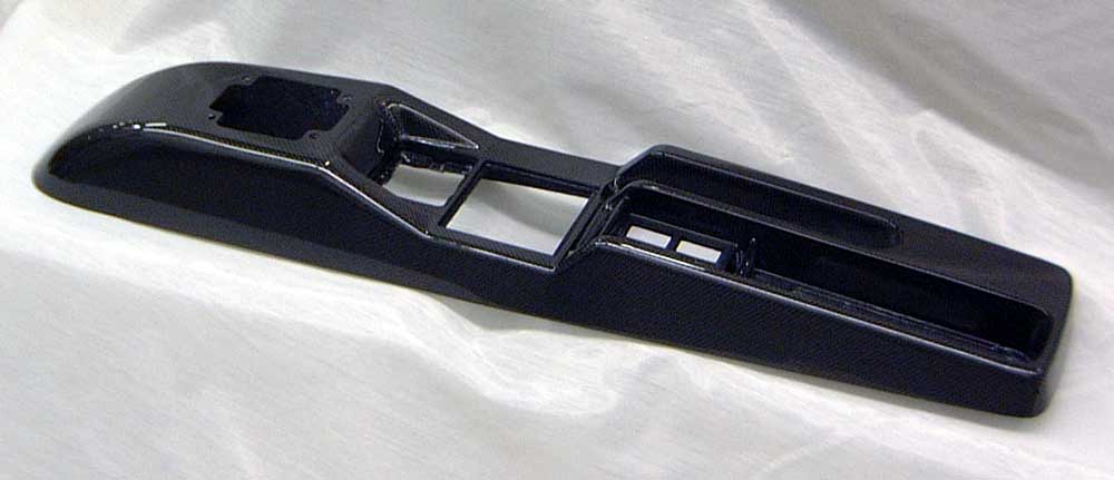 This carbon center console is a direct replacement for the stock aluminum part. The console comes with threaded metal mounting points attached to the underside of the part, as well as pre-drilled hardware holes. The console includes a matching flip-up switch cover that utilizes the stock spring-loaded hinge. It fits the Ferrari 360 Modena and Spider, F1 and Manual models, with no modifications to either the part or the vehicle. The stock switches, shifter, ashtray, and emergency brake hardware fit securely in place with stock fasteners, which are also used for the console-to-vehicle attachment. Thick urethane clear coat provides an incredibly smooth, deep gloss and excellent durability.