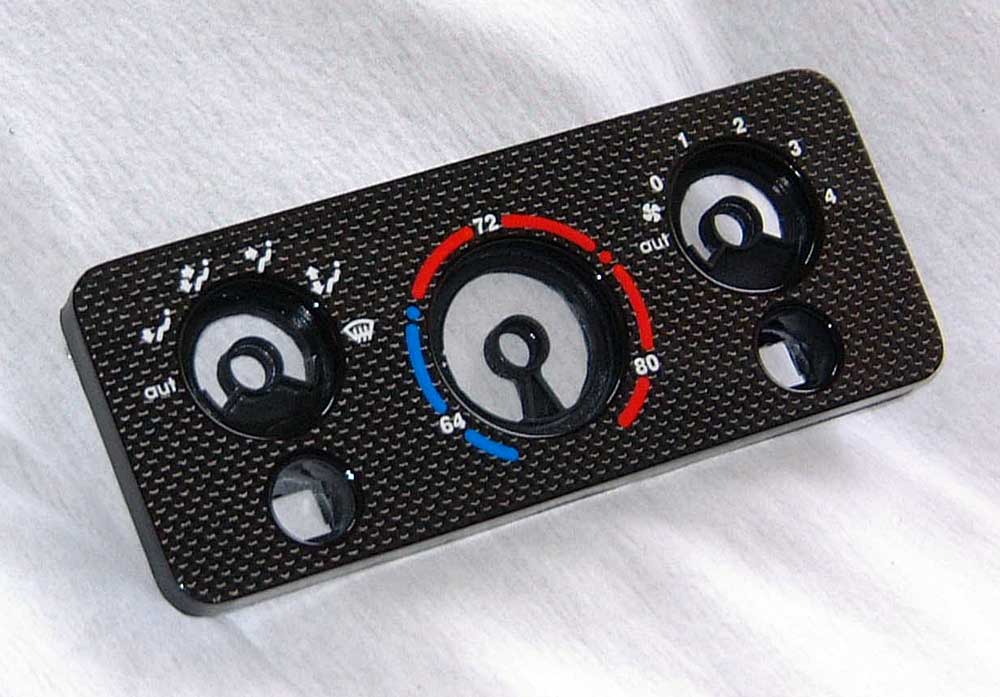 This carbon fiber climate control panel is a direct replacement for the stock plastic part. The panel comes with pre-drilled attachment holes, and mounting studs on the backside of the part. It fits the Ferrari 550 and 575, F1 and Manual models, with no modifications to either the part or the vehicle. The stock climate control knobs and buttons fit securely in place. Console attaches to vehicle with stock hardware. Thick urethane clear coat provides incredibly smooth, deep gloss and excellent durability.
